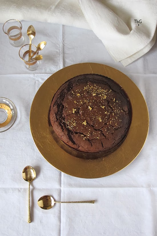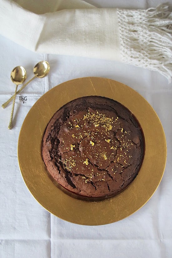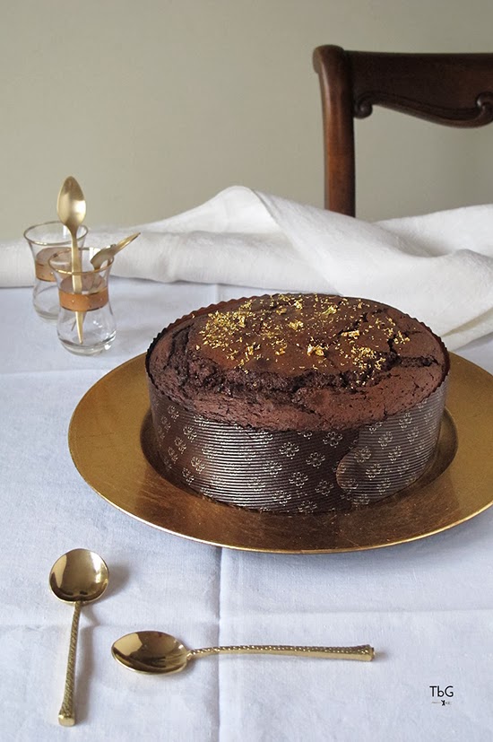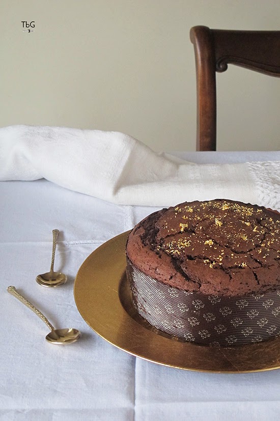 Me parece una opción perfecta también para ofrecer en Navidad, en esos días que se queda con los amigos para tomar en casa una copa de champagne. Qué mejor que con algo dulce y dorado! Entonces las uvas blancas serán sin duda la mejor de las compañías para este exquisito bizcocho de chocolate y oro.