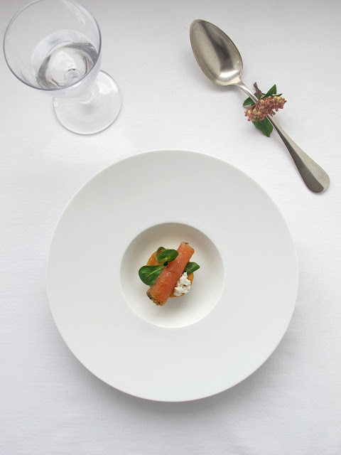Me encantan los platos pequeños, o con pequeña cantidad de comida. Si hay quien los ve ridículos por su escasez, quizá debería saber que son el comienzo de una larga serie de pequeñas degustaciones, y que al final todo el mundo se va a quedar más que satisfecho.