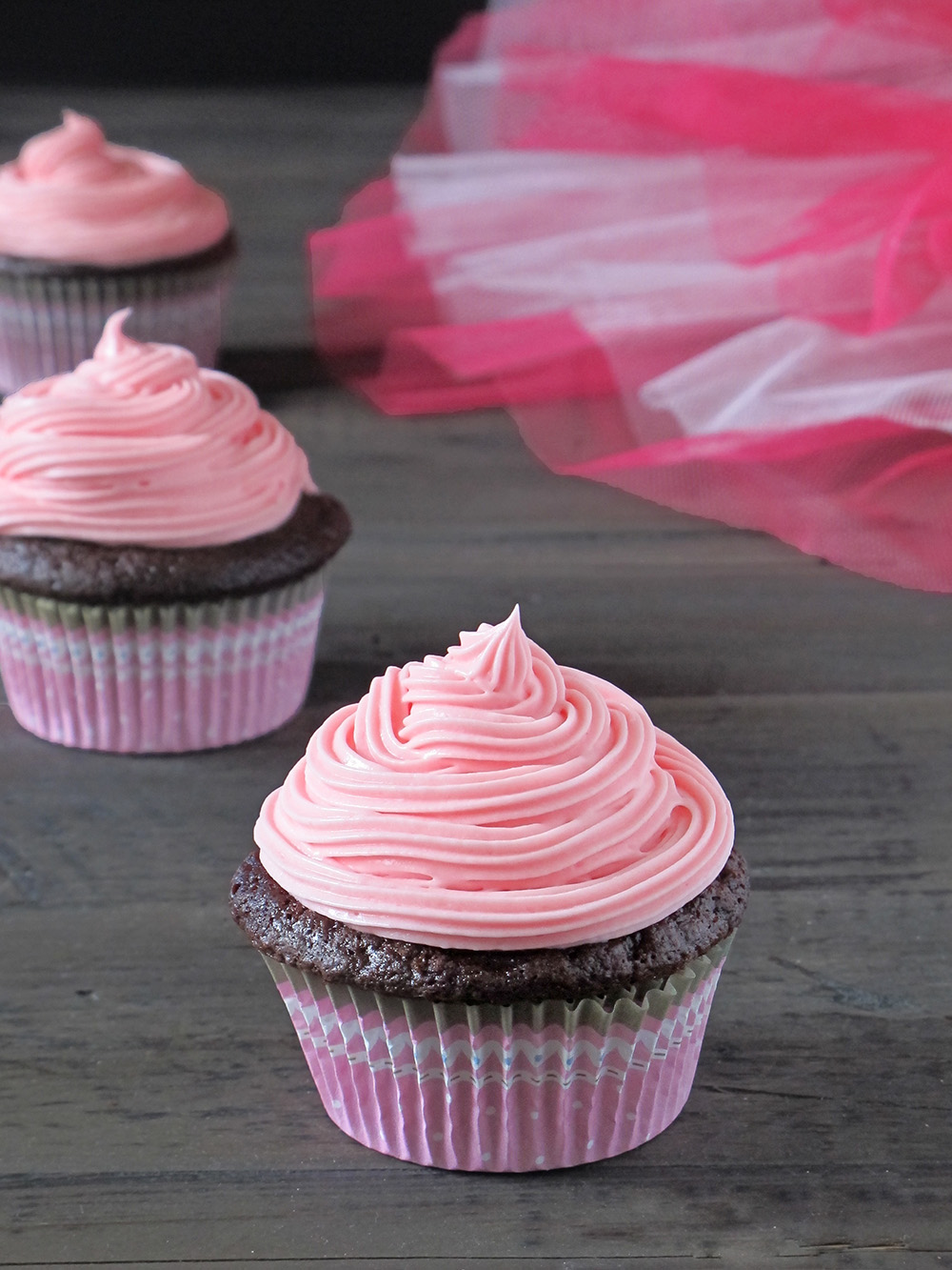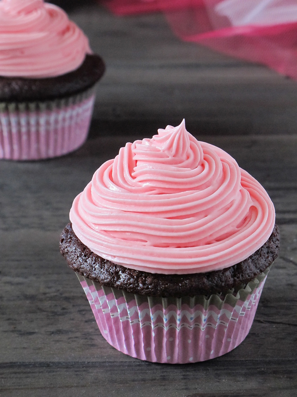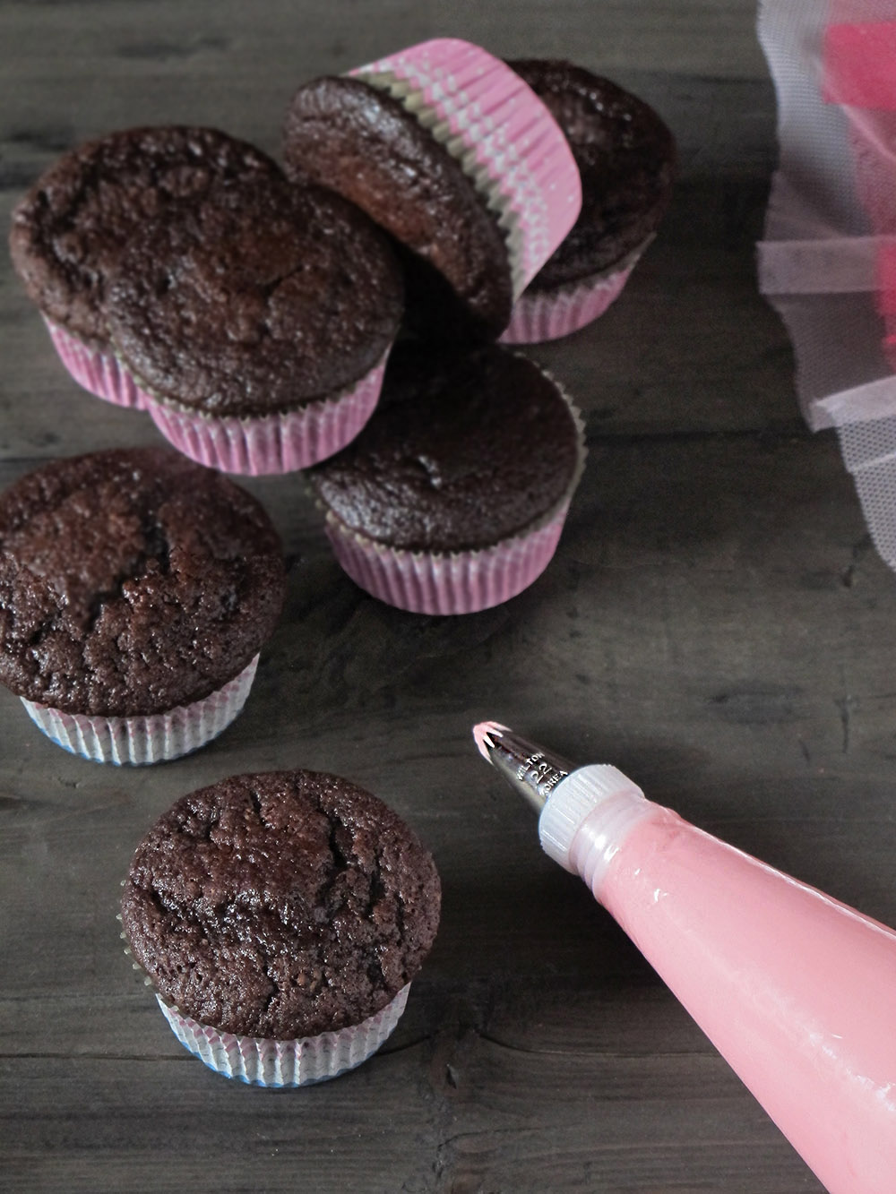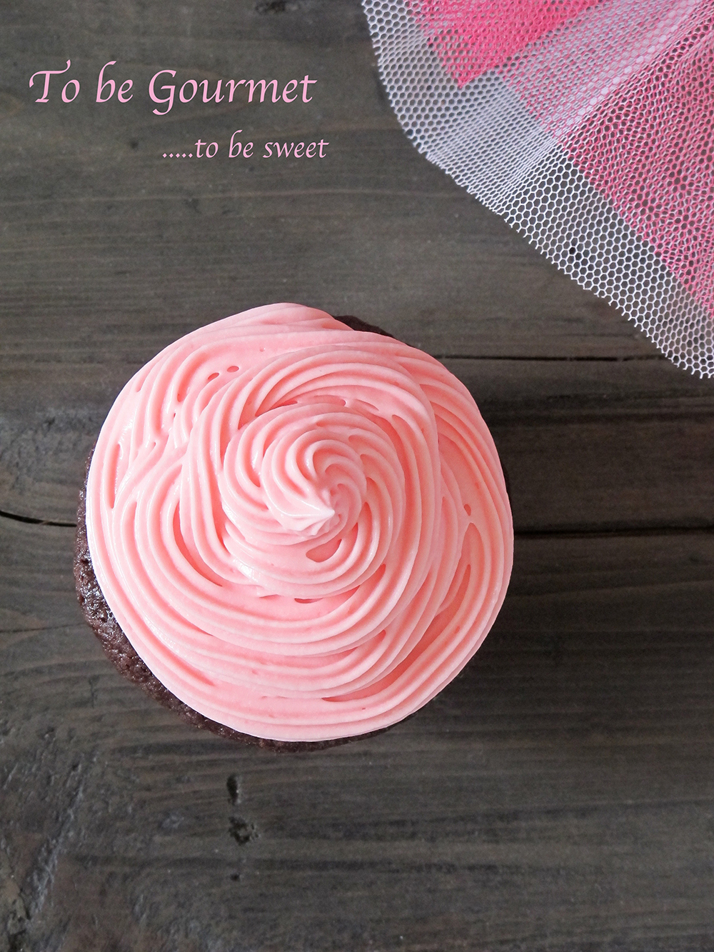 La receta del frosting podéis verla AQUI. Sólo tenéis que añadir un punto del color que os apetezca; si os ha gustado este acabado esté hecho con el rosa de Wilton, y la boquilla nº 22 de la misma marca.