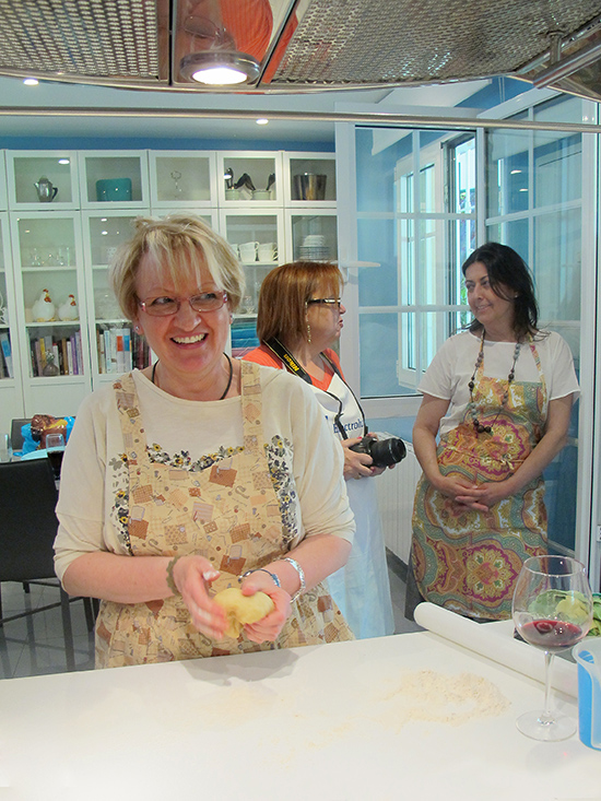 Nuestra profesora Marga lo consentía, muy sabia, porque conoce perfectamente la capacidad que tenemos las mujeres de hacer 8 cosas a la vez, pero su audiencia variaba constantemente; impartía sus teorías sobre las masas dulces y saladas mientras golpeaba su bola de harina y agua, siguiendo el método francés de amasado, para Tere, kuki y Carmen, y cuando levantaba la mirada de la encimare se encontraba con Concha, con Bea y conmigo.