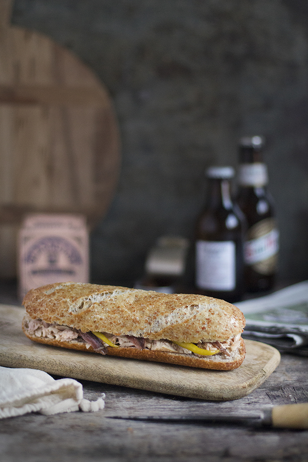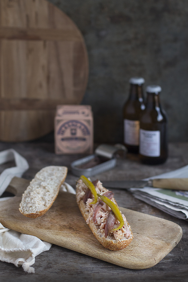 Y así es como hacemos en casa este delicioso y a la vez sencillo bocadillo. Para las noches de fútbol es perfecto, o para cuando tenemos el capricho de apretar con las manos un pan rico, oír su crujido e hincarle el diente a esa fórmula tan donostiarra que compone el bonito del norte con la anchoa y la piparra.