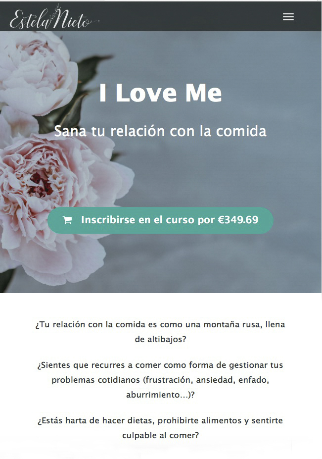 El Curso “I love me”, de Estela Nieto, incluido en el Bundle cuyo coste después del 18 de diciembre vuelve a ser de 349 €. Mirad qué pinta: