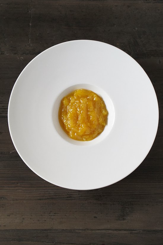 La idea la tomé de mi cena en el Bulli, donde Ferrán Adría ofrecía una oblea con virutas de foie super frío que se templaba en la boca; exquisito, y sin duda un contraste fantástico para la salsa de mango y miel.