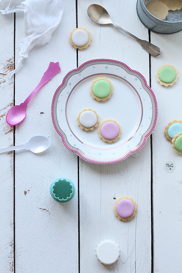 Son unas galletas divertidas, femeninas, primaverales, ideales para acompañar una charla en el jardín. Aunque debo confesar que no salimos de la cocina porque yo estaba en plena sesión fotográfica y les pareció entretenido mirar cómo lo hacía.