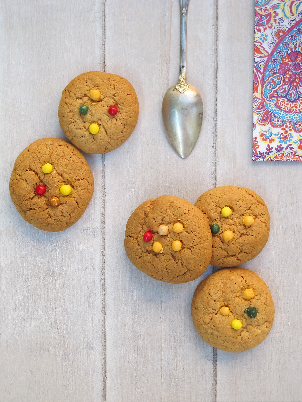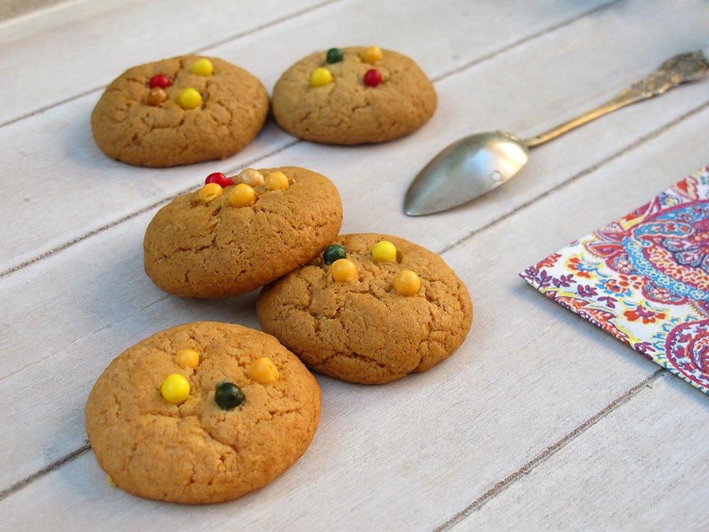 Los encontraréis croks de colores los encontraréis en los supermercados. Y se colocan simplemente encima de la bolita de galleta que se va a hornear. Al extenderse y aplastarse con el calor y la cocción, se reparten sobre la superficie como véis.Un éxito y mucho más sanas que las galletas industriales por supuesto!.