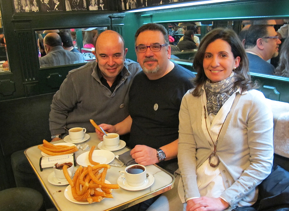 Esta foto recoge uno de los momentos finales de la jornada con Alfonso, Cristina y Manu Catman ganador del Oscar al mejor actor secundario por “Gastronómadas al borde de un ataque de risa”.
