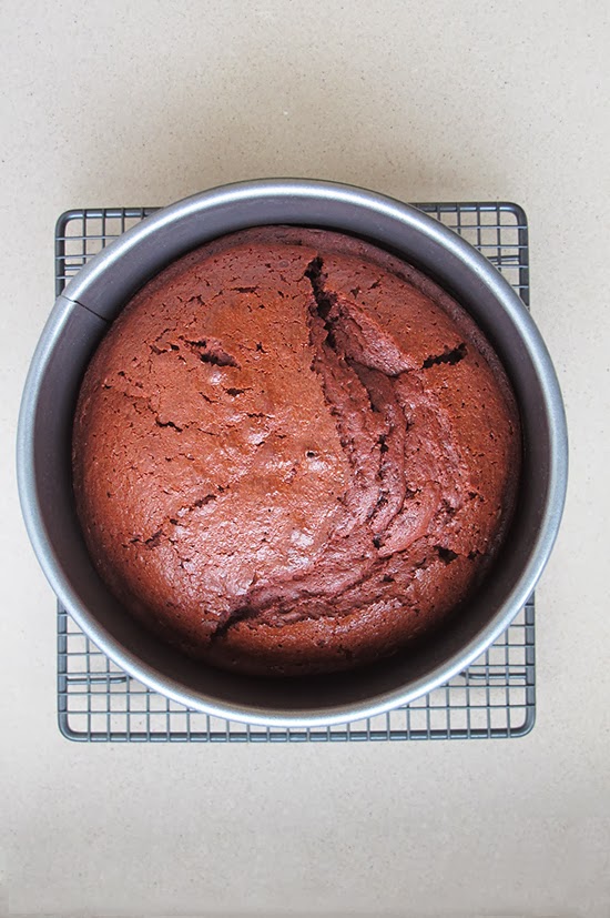 Como podéis comprobar, he respetado la forma original del pastel que sube por acción del impulsor. Si os apetece que sea más plano tenéis dos opciones: O bien enrasarlo con un cuchillo largo o una lira despreciando la parte alta. O bien colocando un bol con agua en el horno debajo del bizcocho mientras se hornea. Para decorarlo le daremos la vuelta, así nos quedará la parte más lisa y bonita.