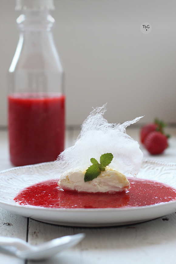 Cuando por su cumpleaños le regalaron a Marta una máquina para hacer nubes de algodón en casa, no me pude poner más contenta.! Empecé a pensar enseguida en recetas para hacer con algodón de azúcar. Recetas dulces, primero. Por ejemplo una sopa fría de fresa con un poco de queso, una combinación de lo más clásica, que se convierte en un lujo de plato con ese detalle dulce que del azúcar etéreo.