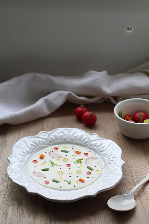 Me apetecía demostraros que es bien sencillo recibir en casa y organizar una cena fantástica con pocos recursos y quedando genial. Y lo voy a hacer explicando como a preparar esta rica sopa fría de queso y vegetales, que será sin duda un aperitivo para triunfar.