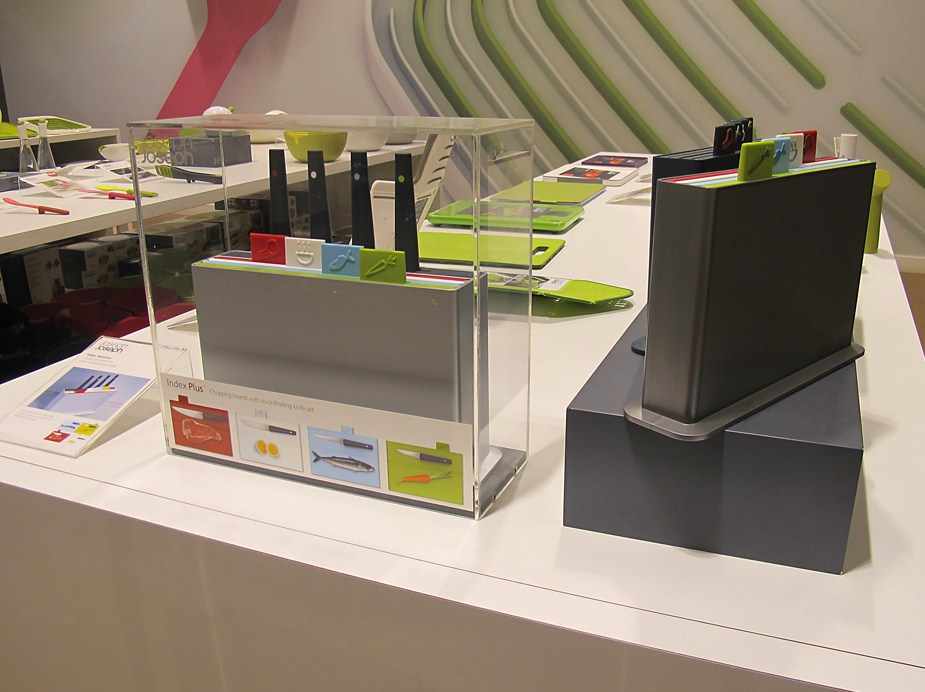 Es el “Chopping boards with coordinating Knife set“. Es decir, un set de tablas de cortar carne, pescado, frutas o verduras, y que incluye 4 cuchillos adecuados a cada opción. Si os ha gustado la idea, podéis comprarlo en Amazon. Lo venden por 60 Libras, el mismo precio que en la tienda. Es chulo para un regalo no?
