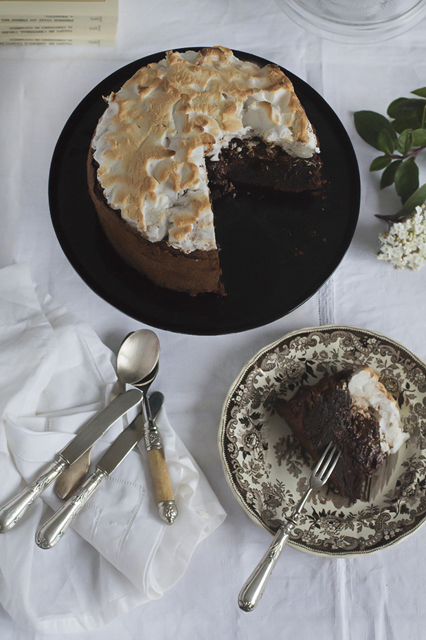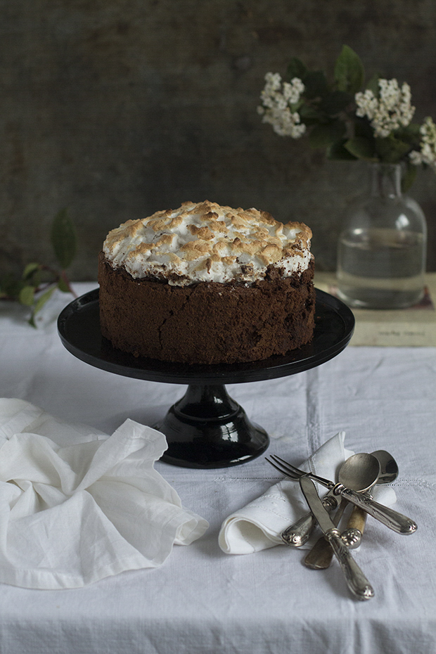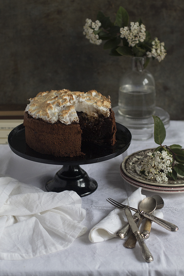 Cuando hagáis los cortes para servir, notaréis que el bizcocho de esta tarta es suave y húmedo. El chocolate troceado se habrá fundido y lo mojará. Las nueces tostadas le darán un sabor muy peculiar;, a mí me recuerda al de las palomitas. Y el merengue, entre crujiente y liviano, le confiere una textura divina a esta tarta de chocolate con la que sin duda vais a triunfar.