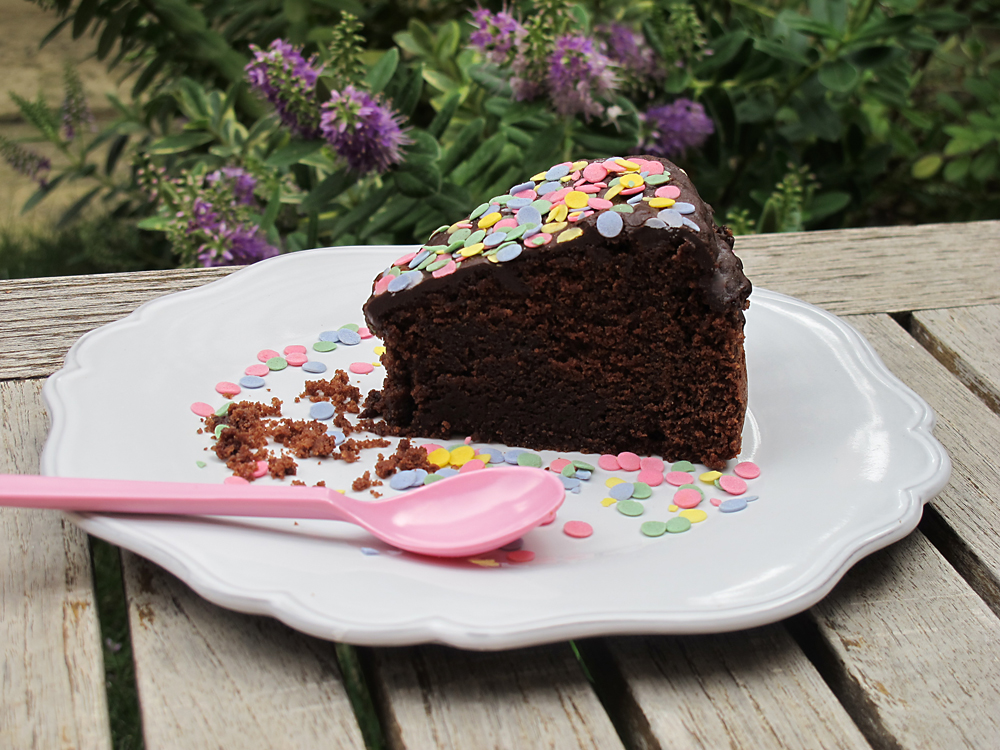 Menuda tarta le he preparado! De chocolate y confetti!!….