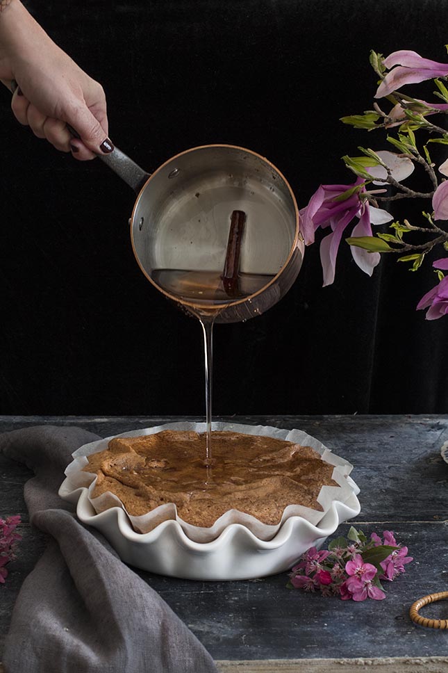 - Vertemos el almíbar sobre la tarta cuando esté a temperatura ambiente y dejamos que vaya absorbiendo poco a poco la humedad durante al menos otra media hora.