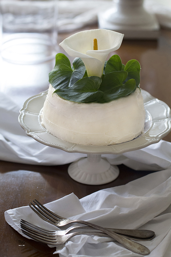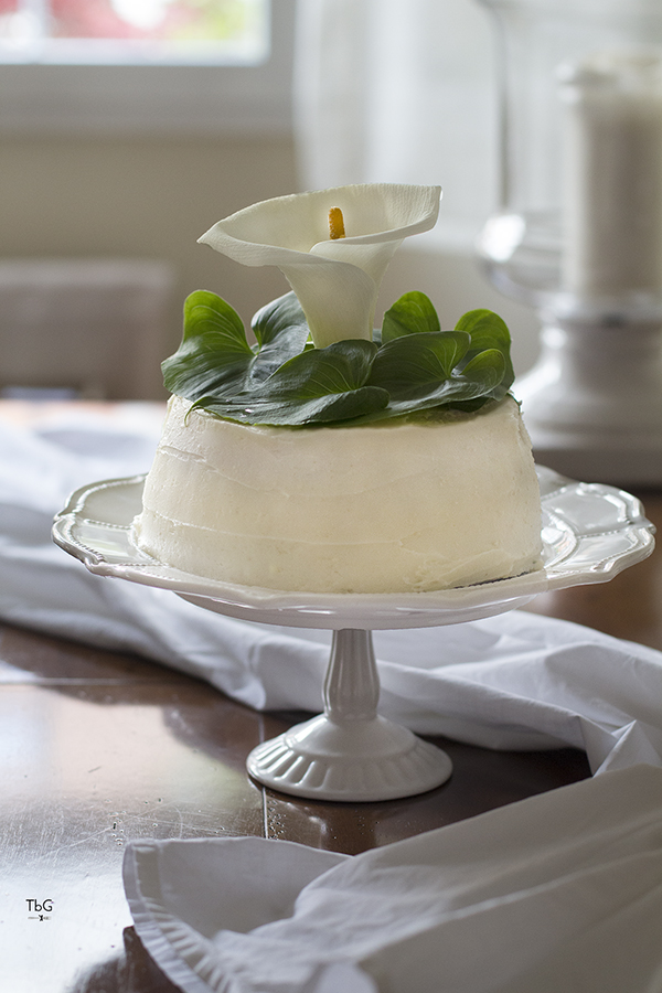 Esta tarta, adornada con un lirio de agua, es un homenaje a mi hija y a mi madre.