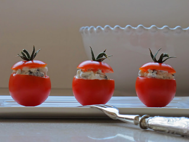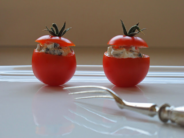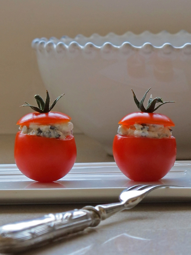 Si no os apetece hacer manualidades y comenzar a vaciar diminutos tomatitos como a veces hago yo….. lo podeís extender sobre una rodaja de tomate grande y punto, o colocarlo en una copa de helado en forma de bola salpicado de trocitos de cherrys….