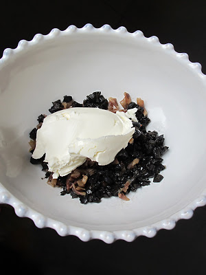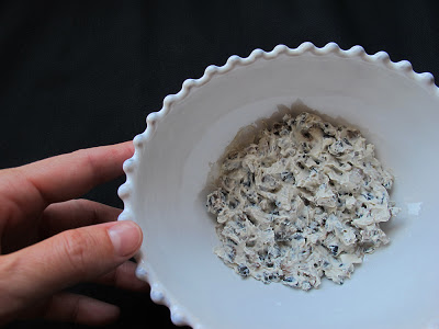 Como se puede ver, he picado muy pequeñita la anchoa y la aceituna, para después incorporarle un buen cucharón de queso. Las cantidades son un poco a gusto de cada uno. Después de hacerlo varias veces iréis viendo cómo os gusta la mezcla; si con más de uno o más de otro.