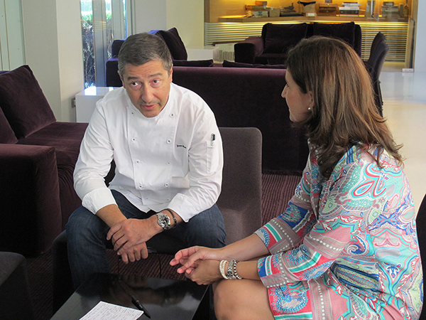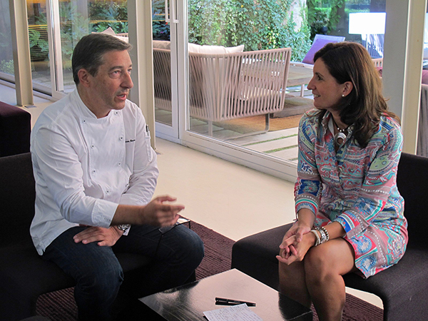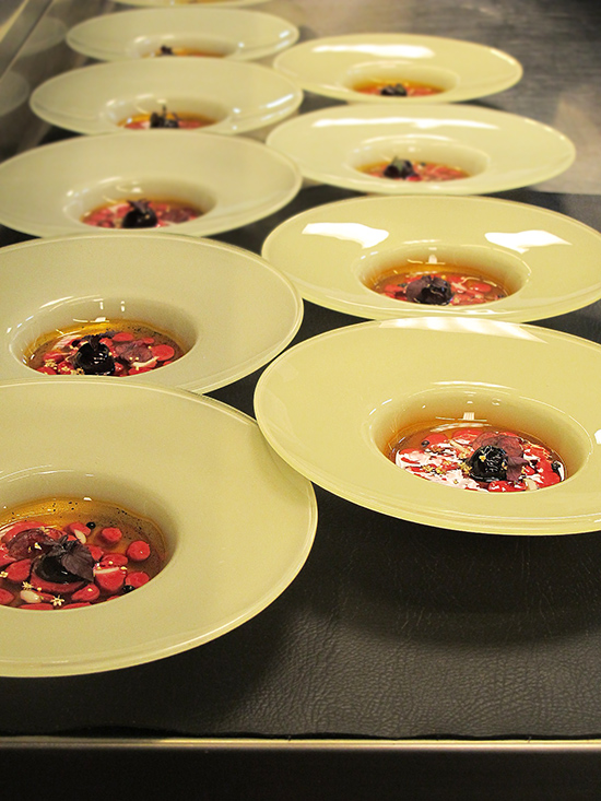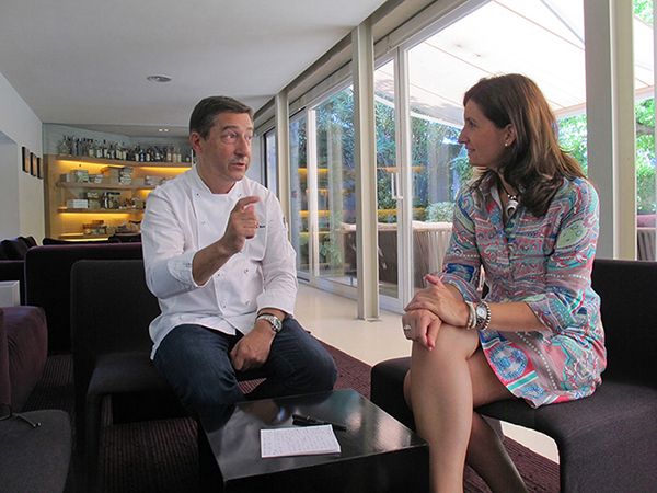 En los seis que le siguen; una “oca a la royale y cotas de sangre de remolacha”, o el “helado de masa madre” sobre un plato que respira y que tuve la ocasión de probar en la cena que precedió a esta charla con Joan.